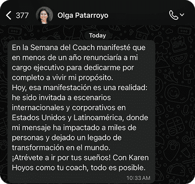 Karen Hoyos es una reconocida conferencista internacional, coach de coaches, celebridades y empresas, con más de setenta mil graduados de sus entrenamientos a lo largo de veinte años de experiencia. Es una exitosa empresaria y autora mundialmente aclamada del libro PROPÓSITO: El último camino.